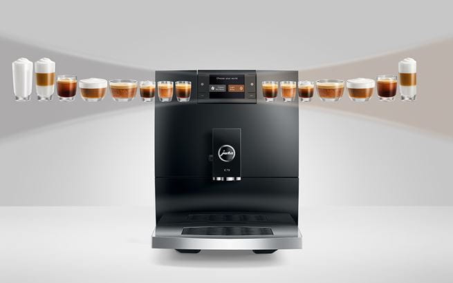 Das Design der kompakten C9 lehnt sich an die Premium-Klasse von JURA an. Wellenförmige Strukturen prägen den Wassertank sowie die verchromte Tassenplattform. Die konvex-konkave Front strahlt Eleganz und Klasse aus und integriert das 2,8-Zoll-Farbdisplay harmonisch ins Gesamtbild.